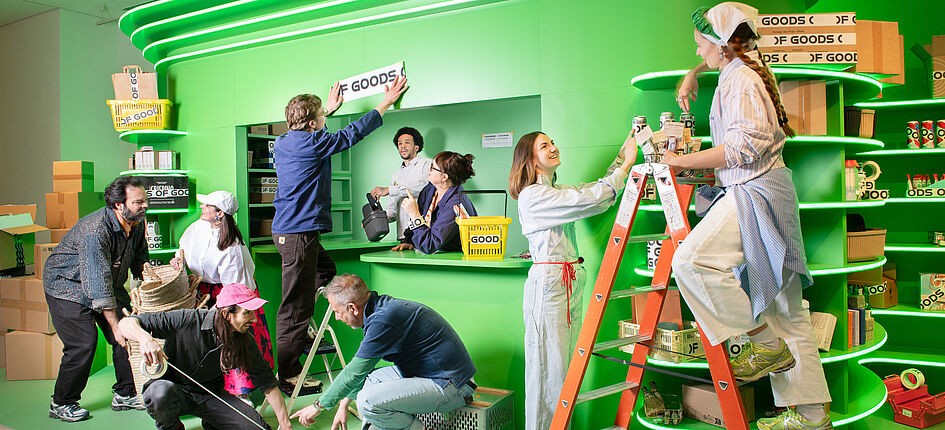 Da sich Konsumierende zunehmend für die Herkunft von Materialien und auch für deren Kreisläufe interessieren, soll OF GOODS in diesen Bereich Kontext schaffen. Dazu tragen offene Werkstätten und kuratierte Ladengeschäfte ebenso zu bei wie begleitende Formate. So wird einerseits Handwerk sichtbar und andererseits lernen die Kundinnen und Kunden an einer Do-it-yourself-Station, wie sie Kleidungsstücke flicken oder Schuhe pflegen können.